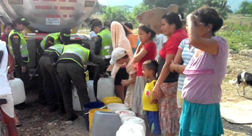 Una luz de esperanza se abrió para habitantes de los barrios Villa Sol, Nuevo Horizonte, Tierra linda, Los Cocos, Los Coquitos al igual que en el Ancianato Municipal; la razón, las actividades que liderando hombres y mujeres de la Institución permitieron gestionar ante diferentes instituciones, empresas privadas y líderes de la comunidad la consecución de un vehículo tipo tracto camión que en calidad de préstamo hizo posible realizar el transporte y suministro en los diferentes barrios del municipio de 150.000 mil litros del preciado líquido vital.En este sentido, el servicio de policía sigue abarcando acciones comunitarias que generar protección y un acompañamiento constante, la población de mayor atención han sido las madres y mujeres que acuden con el resto de la familia a recibir estos suministros al igual que otras ayudas; la intención ha permitido garantizar que estos momentos difíciles además de los recursos es necesario la protección necesaria de la comunidad, porque pese al tiempo de sequía el valor del compromiso se convierte en esperanza para estas familias del Cesar y en general de la necesidad que registran varias zonas al norte del territorio nacional.La Policía Nacional agradece la solidaridad que ha nacido del compromiso y de los corazones de otros ciudadanos y dentro del marco del respeto seguiremos presentes en procura de un mejor bienestar.Finalmente, nuestro trabajo también sigue siendo contrarrestar la tala indiscriminada de árboles que conduce al fenómeno de la deforestación y afectación del equilibrio ecológico, esperamos información valiosa a través de las líneas de emergencia gratuitas 123, 156, 165.
