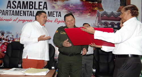 Meta. Un reconocimiento a la labor realizada por la Policía Nacional con la comunidad en este departamento, realizó la Asamblea Departamental a través de la entrega en nota de estilo de la ordenanza No. 841 del 2014 "por medio de la cual se reconoce la distinción reservista de honor y se le establecen estímulos dentro del departamento".El homenaje liderado por los honorables Diputados en cabeza del señor presidente de la Asamblea, busca generar respeto, apoyo y solidaridad en la comunidad metense con su Policía Nacional.El evento se llevó a cabo en el recinto de la entidad, mediante audiencia pública, con la presencia de autoridades de la región, medios de comunicación y comunidad en general.