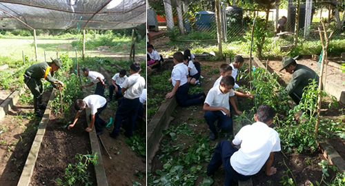 Con proyectos productivos de frutas y hortalizas la Policía Nacional de todos los Colombianos en el departamento de Arauca, busca afianzar los lazos de seguridad, productividad, progreso y confianza.La Policía Nacional consiente de su deber institucional, viene adelantando desde el año 2010 una serie de actividades de acercamiento y de trabajo conjunto con la comunidad con el objetivo de guiarlos hacia la consolidación de una cultura económica de auto sostenimiento. Uno de esas estrategias es la implementación de proyectos productivos en temas agrícolas y pecuarios con madres cabezas de hogar, personas desplazadas y estudiantes. Los uniformados brindan asesora técnica, acompañamiento y dan a conocer la manera correcta de implementar en un entorno 100% seguro la agricultura y la cría de ciertos animales. Este apoyo se adelanta gracias al programa nacional "Carabineros Gestores de Convivencia y Prosperidad Rural".En la ciudad de Arauca, de la mano del Señor Coronel Camilo Ernesto Álvarez Ochoa, Comandante de Policía del Departamento ya se han evidenciado resultados de progreso en estos temas. En la actualidad se adelanta un proyecto productivo con 360 estudiantes del Colegio Agropecuario, a quienes se les está enseñando lo pertinente para la preparación de la tierra, siembra, limpieza y recolección de frutas y hortalizas.En las instalaciones de esta sede estudiantil, se han sembrado alrededor de tres mil semillas de maracuyá, tomate y cilantro. Gracias a la formación y el compromiso adquirido por los uniformados, se ha logrado implementar destrezas agrícolas en la población para contribuir al mejoramiento de la calidad de vida e incremento de los ingresos económicos a partir del desarrollo del campo.