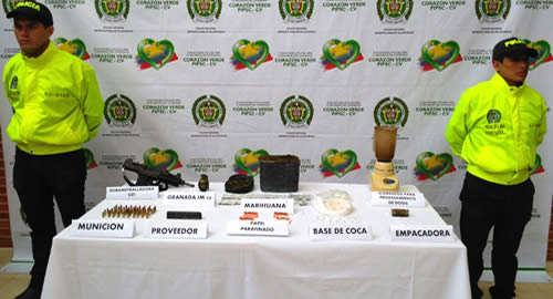 En desarrollo del plan choque "Vamos Seguros", uniformados en coordinación con la Fiscalía General de la Nación lograron la captura de este sujeto y la aprehensión de dos menores de edad, quienes se dedicaban a la distribución de alucinógenos.Una de las acciones se registró en el barrio la Reliquia, mediante una diligencia de registro y allanamiento que dio como resultado el hallazgo de tres mil dosis de marihuana, una granada IM26, 300 gramos de base de coca y utensilios para el procesamiento y comercialización de la sustancia alucinógena.El capturado fue dejado a disposición de la fiscalía por los delitos porte tráfico y fabricación de armas de fuego y tráfico de estupefacientes, mientras que los adolescentes fueron dejados a disposición del Centro Especializado para Adolescentes (Cespa).