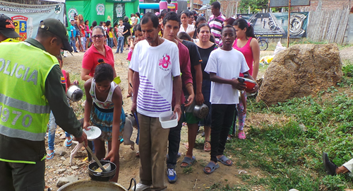 Al calor de la leña y alrededor de una gran olla se llevaron a cabo la mezcla de diferentes ingredientes entre ellos dos esenciales: 1. enseñar medidas de autocuidado para prevenir el hurto a residencias, 2. Alejar la violencia de la convivencia para terminar con las riñas y homicidios".Complacidos de ser atendidos por el grupo de uniformados policiales, además del personal de auxiliares bachilleres, la patrulla del cuadrante No.7 y algunos integrantes que se vincularon del Ejército Nacional al igual líderes comunitarios, se logró la armonía del delicioso almuerzo comunitario. De esta manera fueron compartidos más de 300 almuerzos con niños, jóvenes y adultos de este sector vulnerable, quienes en muchas ocasiones no pueden acceder a un plato de comida especial por la misma situación económica que padecen en donde hasta los mismos recursos básicos, espacios lúdicos o recreativos son escasos.En este sentido al final se estimó que 500 ciudadanos acudieron, lo cual fue una grata respuesta que motivó a los gestores, teniendo en cuenta que estuvo centrada en el mensaje clave de contribuir al fortalecimiento de valores cívicos, culturales, sociales y éticos con los cuales se pretende avanzar hacia un cambio de comportamiento y actitud para hacer de lado los factores generadores de violencia en los barrios del departamento del Valle.De la misma manera cerrando la tarde se realizaron actividades lúdicas, recreativas y una campaña educativa para terminar de amenizar una de las mejores tardes compartidas con los vecinos del barrio La Ceiba.
