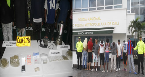 Con investigaciones realizadas por la Policía Nacional, se estableció que la organización delincuencial estarían dedicados a la distribución y comercialización de estupefacientes principalmente en el lugar conocido como – Parque Ornamental del barrio Siete de Agosto perjudicando la convivencia, salubridad y seguridad de la comunidad.El operativo realizado y las 11 órdenes de allanamiento y registro adelantadas en los barrios Las Ceibas, Los pinos y Mojica que fueron emanadas por la Fiscalía 31 Especializada Antinarcóticos de Cali, dejan como resultado la captura de nueve (09) personas vinculadas a esta banda delincuencial. Siete de ellas, solicitadas mediante orden de captura por el delito de concierto para delinquir y tráfico, fabricación o porte de estupefacientes y las otras dos (02) capturadas en flagrancia al interior de los inmuebles allanados.A todos los capturados les fue proferida en audiencia, medida de aseguramiento por un Juez de Control de Garantías. Entre los cuales se encuentran: alias "la negra" quien sería el líder de la banda, "caritas", "patojo", "flaco", "Brayitan", "gordo lindo" y "soldado". Cabe anotar que durante el desarrollo de la acción policial fueron incautadas 267 dosis de marihuana tipo Creepy y un Chasis de vehículo que se encuentra reportado como hurtado.La Policía Nacional continuara realizando actividades para combatir los delitos asociadas al tráfico, fabricación y porte de estupefacientes que afectan a la ciudadanía. Además invita a la comunidad a que aporte información que contribuya a derribar los flagelos de delincuencia, a través de las líneas 123 o 156 de la Red de Aliados para la Prosperidad, en donde profesionales de policía garantizan completa confidencialidad.