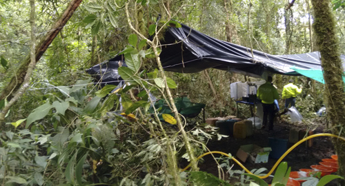 En el sitio fueron hallados 82 kilos de cocaína junto con insumos líquidos y sólidos para el procesamiento del alcaloide.Nuestro personal adscrito a la seccional de investigación criminal del departamento de Policía Norte de Santander, llevó a cabo una operación contra el tráfico local de estupefacientes, en la que se logró la destrucción de un laboratorio para el procesamiento de clorhidrato de cocaína.El complejo cocalero, avaluado en 100 millones de pesos, fue ubicado gracias a intensos trabajos de inteligencia y policía judicial que dieron como resultado su hallazgo en el sector conocido como El Alto de Mejué del municipio de Chinácota de una estructura rústica de madera y tejas de zinc, en las que habían 82 kilogramos de cocaína, recipientes plásticos y metálicos, hornos microondas, grameras digitales, una planta eléctrica, una prensa hidráulica, un compresor de aire, dos mesas para filtrar, coladores, cinta adhesiva, varios rollos de papel filtro y 90 galones de gasolina.Las muestras y diligencias del procedimiento de destrucción de este laboratorio, que al parecer tiene una capacidad de producción mensual aproximada de 100 kilos, el alcaloide que según las investigaciones pertenecía a la estructura financiera del Clan Úsuga, fueron puestas a disposición de la Fiscalía General de la Nación y el predio donde se encontraba el complejo cocalero se le iniciaría un proceso de extinción de dominio.Nuestros uniformados adscritos al Departamento de Policía Norte Santander mantendrá su lucha frontal contra el tráfico local de estupefacientes con el fin de preservar la convivencia y seguridad ciudadana en toda la región e invita a la comunidad a seguir suministrando información que permita la ubicación y destrucción de sitios destinados para el procesamiento de narcóticos.