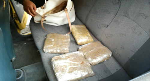 Gracias a las acciones de control y vigilancia fueron capturadas dos personas a quienes se les hallaron 4.265 gramos de marihuana y la incautación de un taxi donde se movilizaban.Los uniformados hallaron el alucinógeno dentro de un bolso que contenía cuatro paquetes con el alucinógeno. Entre los capturados se encuentra una mujer de 35 años de edad y un hombre de 41 años quienes fueron puestos a disposición de las autoridades competentes al igual que la marihuana incautada y el vehículo en el que se transportaban.