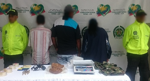 Gracias a labores investigativas desarrolladas por uniformados adscritos a la Seccional de Investigación Criminal (Sijin), fue ubicada una vivienda utilizada para el expendio de sustancias alucinógenas en el sector rural del municipio de Dosquebradas.Al ingresar a la residencia ubicada en la vereda La Fría bajo la coordinación de la Fiscalía, fueron hallados 1.826 gramos de bazuco, una balanza, un arma de fuego tipo revolver, 17 cartuchos y un uniforme alusivo al Ejército. Los capturados, dos hombres, una mujer y los elementos incautados fueron dejados a disposición de la Fiscalía Seccional del municipio de Dosquebradas Risaralda, por el presunto delito de tráfico, fabricación o porte de estupefacientes.