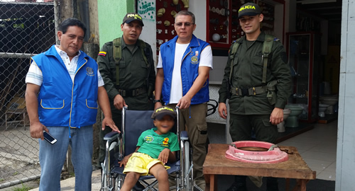 La Policía Nacional está presente en los rincones más retirados mediante el liderazgo de un grupo de uniformados y funcionarios del fondo rotario quienes le cumplieron el deseo a Oscar.Oscar un menor de 6 años con parálisis cerebral fue el motor que movió desinteresadamente a hombres y mujeres policías de buen corazón que  trabajaron para contribuir y mejorar  la calidad de vida del niño ante sus condiciones especiales de salud y algunas económicas que vive su humilde familia; gracias a esa gestión ahora recibe ayuda por parte de residentes en el puerto. Mientras este "Ángel de la Vida" disfrutaba del afecto de los policiales, allegaba a su casa una sorpresa más, una silla de ruedas para ayudarle en su desplazamiento.