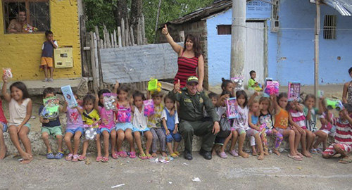 ​Con el inicio de las novenas navideñas se llevó a cabo la entrega de regalos en algunos barrios para más de 200 niños y niñas de bajos recursos.La Policía Nacional viene trabajando de la mano con la población infantil, inculcando, fomentando y rescatando valores muy importantes como son la tolerancia,  el respeto la cultura y el amor por la familia.La institución quiere que los niños y niñas pasen una Feliz Navidad y tengan un juguete para disfrutar en estas festividades decembrina y hacerlos protagonistas en estas actividades, por esta razón le hace una invitación a la comunidad para que en esta época de Navidad comparta un abrazo, una sonrisa, una cena o un regalo con todos los niños de bajos recursos de Girardot y la Región.