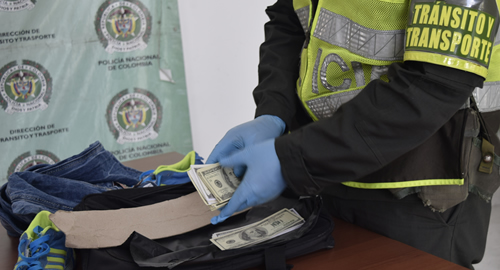 Las acciones operativas se desarrollaron mediante la ubicación de un puesto de control sobre la vía que de Cartago condice a la ciudad de Pereira a la altura del peaje cerritos, sitio donde los uniformados de la seccional de tránsito y transporte registraron un vehículo tipo buseta de servicio público, donde hallaron dentro de una maleta camuflada cubierta de prendas de vestir 110 billetes de denominación 100 dólares C/U para un total de 11.000 dólares falsos.Ninguno de los pasajeros que viajaban en el automotor se atribuyeron la propiedad del equipaje; el vehículo de servicio público cubría la ruta Cali-Medellín y se investiga el porqué, la maleta no portaba los tiquetes de seguridad de la empresa  transportadora.​En lo que va corrido de este año es la primera incautación que hace la policía de moneda falsa que es transportada por los ejes viales. La Policía Nacional viene desarrollando acciones de capacitación  a conductores, para que estos ejerzan un control sobre los equipajes.