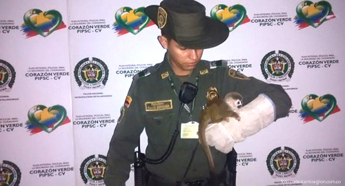 Gracias a la llamada de un ciudadano al cuadrante número dos del municipio de San Martín, en vía pública del barrio Canaima, uniformados reafirmaron su compromiso de corazón con la protección de la fauna silvestre, al rescatar un mico tití.Al parecer, el espécimen al intentar huir del ataque de los animales domésticos, fue arrollado por un vehículo que en esos momentos cruzaba por el sector, ocasionándole una herida considerable en la cadera. De inmediato y con las medidas especiales fue trasladado ante Cormacarena, para que fuera valorado por un veterinario y gestionar su reincorporación al hábitat natural.El apoyo ciudadano continúa siendo un pilar para construir comunidades pacíficas y solidarias con el medio ambiente, como uno de los mayores tesoros.