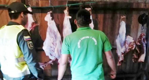 Profesionales de La Policía Nacional adscritos al Grupo de Policía Ambiental y Ecológica en el Amazonas, en coordinación con el Grupo de Carabineros de la Policía Nacional, adelantaron varias diligencias de control, orientadas a garantizar el cumplimiento de las normas de sanitarias en el sacrificio de reses y la manipulación del subproducto cárnico, obteniendo como resultado la incautación de 120 kilos de carne de res avaluados en 1.800.000 pesos; procedimiento realizado en una barcaza en el muelle Victoria Regia.El subproducto cárnico fue puesto a disposición de La Secretaria de Salud Municipal. De igual forma en el municipio de Puerto Nariño fueron incautados 140 kilogramos de carne de res avaluada en la suma de $2.200.000 de pesos; subproducto cárnico puesto a disposición de Saneamiento Municipal.Los procedimientos fueron realizados en aplicación de la ley 9 de 1979 Código Nacional Sanitario de las carnes sus derivados y afines mataderos "Art: 307, el sacrificio de animales de abasto publico solo podrá realizarse en mataderos autorizados por la autoridad competente y además de cumplir con los requisitos de esta ley y sus reglamentaciones, se ajustaran a las normas que sobre sacrificio faenado y transporte, dicte el ministerio de salud". Art 324: los animales que hayan muerto durante el transporte o corrales no podrán destinarse al consumo humano.