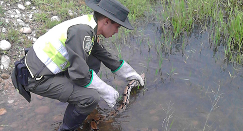 Villavicencio. Las labores de atención inmediata permitió que las autoridades de policia lograran el rescate de un güio y una babilla.