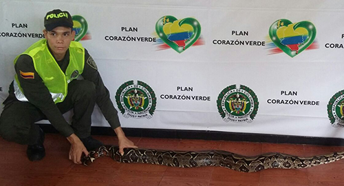 ​Con el propósito de garantizar la protección de la fauna silvestre, pero también de velar por la tranquilidad de la población, en los municipios de San Martín y Barranca de Upía las patrullas de los Cuadrantes rescataron dos boas constrictoras, que extraviadas de su hábitat natural irrumpieron en dos viviendas.El primer caso, se registró en el barrio Prado de San Martín, con el rescate de una serpiente de aproximadamente tres metros de longitud; seguidamente, en el barrio centro del municipio de Barranca de Upía, se rescató de un güio.Estos dos animales silvestre, que se encuentran en vía de extinción, fueron dejados a disposición de Cormacarena, donde serán valorados por un veterinario para gestionar su reubicación en el hábitat natural.