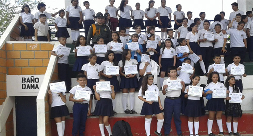 Mediante una labor interinstitucional se llevó a cabo una actividad que consistió en la entrega de la pavimentación de 245 metros de una calle en el barrio Simón Bolívar con apoyo de la Embajada Americana y con la mano de obra del batallón de ingenieros del Ejército Nacional, además se hizo entrega de tres aulas y batería de baños como nuevas instalaciones para uno de los colegios de esta municipalidad, en este evento se realizó la clausura del curso en prevención al consumo de drogas e intervención con las diferentes estrategias de prevención en este municipio, en el cual se contó con la participación 486 estudiantes de los grados 5°, 6°, 7°.Esta actividad tiene como objetivo crear conciencia en estas comunidades mediante capacitaciones con bases fuertes y fijas que le ayuden a estar en la capacidad de resistir al abuso y uso de las drogas y a la violencia.El evento permitió hacer visible la presencia y el compromiso institucional de la Policía Nacional con el Sur del Tolima.