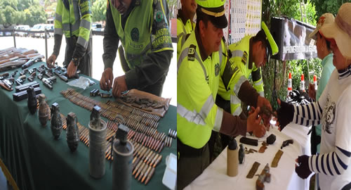 La estrategia de acercamiento con la comunidad denominada 'Plan desarme + vidas - armas', fue liderada por personal de la Policía Nacional con la Seccional de Tránsito y Transporte (SETRA) en los municipios de El Zulia, Los Patios, Puerto Santander y Villa del Rosario, para llevar a sus habitantes así como a los usuarios de las vías, una alternativa para apoyar la cultura de la legalidad y fortalecimiento de la seguridad.En puestos de recepción ubicados en los peaje de estos municipios, una a una fueron llegando las armas de fuego y el material bélico que permanecían en poder de la comunidad, sin contar con los permisos establecidos. Durante la campaña que hace parte de la estrategia institucional, fueron entregadas voluntariamente 50 armas de fuego de largo y corto alcance, 695 cartuchos de diferentes calibres, tres cargadores para armas cortas y largas, cuatro granadas de fragmentación de mano, tres granadas de humo y una granada de perdigones. Dentro de las armas de fuego incautadas hay treinta escopetas artesanales de diferentes calibres, una escopeta de fabricación industrial, 16 armas hechizas tipo trabuco y tres pistolas de fabricación industrial, además de la munición que serviría como suministro para al menos quinientas armas. En las cuatro jornadas de contacto ciudadano, nuestros policías le dieron la bienvenida a hombres y mujeres de todas las edades, quienes convirtieron las bolsas plásticas, costales, papel cartón y cinta adhesiva, como escudos guardianes de aquellos elementos que en determinado caso pueden convertirse en una amenaza para la integridad personal y seguridad de la sociedad. En esta oportunidad cerca de un centenar de personas, especialmente residentes en la zona rural apoyaron la propuesta que buscaba despertar en la ciudadanía un concepto de cooperación a través de la entrega de armamento a cambio de productos alimenticios, cascos y chalecos para el uso de los motorizados. Uno de los casos destacados fue el de una mujer de aproximadamente ochenta años de edad, quien sorprendió con su llegada llevando en su poder una granada de fragmentación de mano en mal estado de conservación, la cual mantuvo en su poder por algunos meses luego de encontrársela abandonada en una finca del municipio de El Zulia, convirtiéndose en una grave amenaza para su integridad y la de su familia. Los participantes y donantes de estos elementos de uso y porte restringido, llevaron para sus casas cincuenta mercados que contenían diferentes productos de la canasta familia, 25 cascos y diez chalecos reflectivos, elementos que simbolizan la gratitud de la sociedad ante un acto de apoyo a la no violencia. Con esta campaña de cooperación ciudadana se contribuye a garantizar mejores espacios de desarrollo social para los habitantes de la zona de frontera, fomentando la cultura del respeto por la vida y al tiempo disminuir los casos de violencia y accidentes que conlleven a la comisión de homicidios y lesiones personales, donde en muchos de los casos las víctimas son menores de edad.