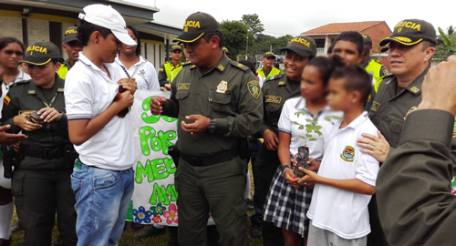 ​Conscientes de la responsabilidad que se debe tener con el cuidado y protección del medio ambiente, niños, niñas y adolescentes de los diferentes planteles educativos del municipio, se vincularon a la siembra de cientos de árboles en el marco de la campaña liderada por la Policía Nacional "Juntos por el Medio Ambiente".El evento inició con un acto protocolario donde los asistentes firmaron un acta simbólica, donde ratificaron su voluntad y compromiso con la conservación del medio ambiente. Más de 100 personas participaron en esta actividad,  acto en el que también fueron entregados algunos animales como: ardillas y tortugas, pues en un noble gesto las familias que los tenían en condición de mascotas, tomaron la decisión de entregarlos a la Policía Ambiental y Ecológica para devolverlos en óptimas condiciones a su habita natural en coordinación con Coorpourabá.