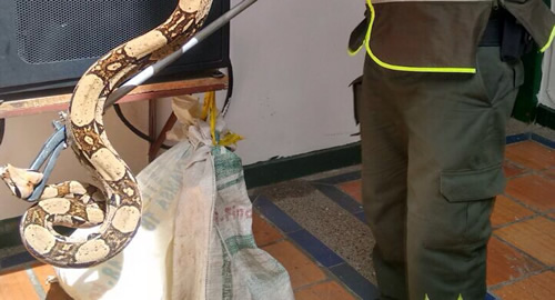 ​Gracias a labores de sensibilización con habitantes de la vereda el Tunal, personal del grupo de  protección ambiental y ecológica rescató las serpientes que al parecer iban a ser comercializadas en más de dos millones de pesos. Las especies fueron entregadas por un hombre de 27 años habitante de la zona, quien las había encontrado en el patio de su casa. Las boas fueron dejadas a disposición de Corantioquia, para su protección y  rehabilitación. La Policía Nacional invita a la comunidad a informar oportunamente casos de tráfico de especies silvestres a través de la línea 123.