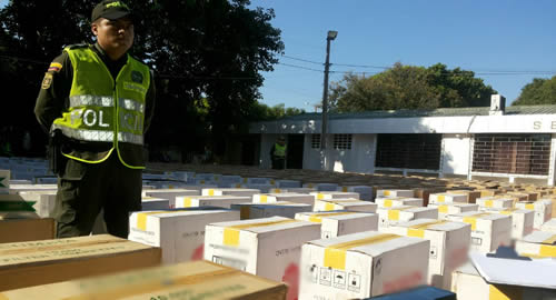 Como resultado a las labores de investigación adelantadas por unidades judiciales de la Policía Fiscal y Aduanera se pudo constatar que en la vía que del municipio de Bosconia conduce al municipio de Aguachica (Cesar), se movilizaba un vehículo que transportaba mercancía de contrabando, lo que permitió que se diseñara un operativo especial que dejó como resultado la incautación de un importante cargamento de contrabando avaluado en más de 800 millones de pesos.Al interceptar el automotor, fueron halladas más de 4 millones 500 unidades de cigarrillo las cuales tenían como destino la ciudad de Cali y cuyo valor asciende a los 800 millones de pesos.Es de anotar que durante el procedimiento policial dos personas que cumplían la misión de informar sobre el estado de la vía a los que transportaban la mercancía de contrabando pretendían evitar el procedimiento policial mediante realización de disparos al aire a la patrulla que se encontraba realizando las labores de inteligencia.Por este hecho se presentó la captura de un sujeto de 32 años de edad quien era el encargado de conducir el vehículo tipo furgón en donde se transportaba el cigarrillo de contrabando, sujeto que fue judicializado por el delito de favorecimiento al contrabando.