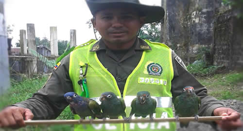 En el marco de la campaña "Vive esta Semana Santa en Armonía con la Naturaleza" nuestras unidades  personal del grupo de protección ambiental y ecológica de la Policía Nacional,  en  el barrio zona minera del municipio de Quibdó,  gracias  a la información de ciudadano  pudo evitar la muerte de  cuatro  especies de aves Lora Cheja "cotorra cabeciazul" nombre científico (pionus menstruus), las cuales tienen un valor ecológico estimado de $ 4`826.178.Las aves se encontraban en un árbol  luego de ser derribado por una retroexcavadora iban a ser lanzadas al río al parecer por el conductor del vehículo. Sin embargo, el oportuno aviso de la comunidad y la intervención del grupo ambiental permitió la conservación y preservación de estas especies fáunicas. Las unidades de la Policía Nacional realizaron la respectiva incautación preventiva de estas especies, dejándolas posteriormente a disposición de  Codechocó.Con la ayuda de la comunidad seguiremos encaminados en la defensa de nuestra flora y fauna de nuestro país.​