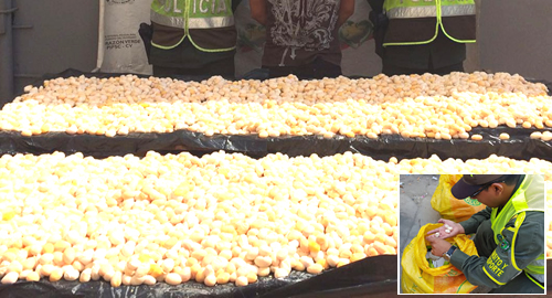 Bolívar. Nuestros policías de Tránsito y Transporte hallaron al interior de vehículos un cargamento de más de 17 mil huevos de iguana.