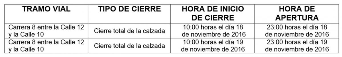 Bogotá. El próximo viernes 18 y sábado 19 de noviembre de 2016, la Secretaría Distrital de Movilidad autorizó el siguiente cierre vial en inmediaciones de la Plaza de Bolívar.