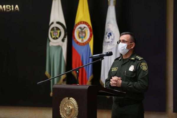 Declaraciones del señor director de la Policía Nacional, General Jorge Luis Vargas Valencia, quien se refiere al ataque con bombas incendiarias que sufrió nuestro Patrullero Cristian Calderón del ESMAD en la ciudad de Bogotá, afectando su rostro, cuello y vías respiratorias.
