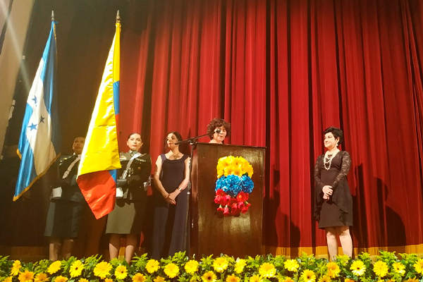 Por la amplia experiencia y reconocimiento que tiene la Policía Nacional en la atención de ceremonias y eventos de asistencia masiva, la funcionaria diplomática delegó en nuestra Institución la responsabilidad de dar apertura a tan majestuoso acto y lograr resaltar que el Pabellón Nacional fuera portado y escoltado por una representante de las instituciones policiales hondureña y colombiana, destacando la importancia de la mujer en la labor policial, así como el dantesco rol y contribución en la Gesta de la Libertad y la Formación de la República.