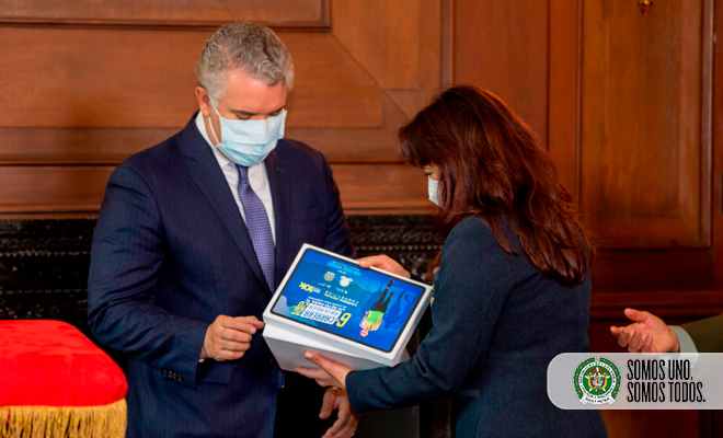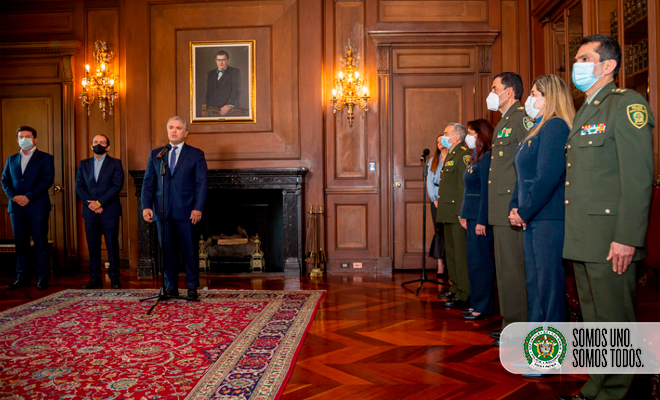 En el acto efectuado en la Casa de Nariño, con la participación de los directivos de la Policía Nacional y de la prueba, el Jefe de Estado resaltó que “ni siquiera la pandemia fue capaz de limitar su desarrollo, porque hemos sido creativos e innovadores para que desde nuestras casas la acompañamos con muchísima emoción”.