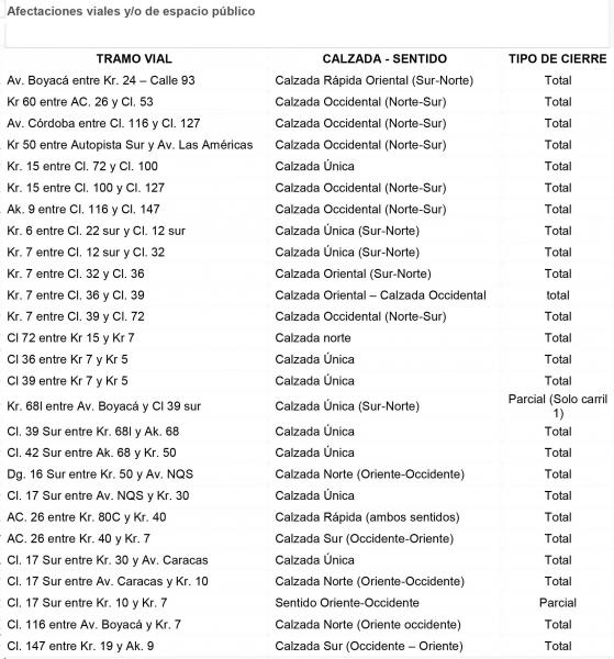 Afectaciones viales y/o de espacio público